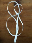 This activity starts out feeling crafty, and then gets a little unexpected. Prep ahead of time by cutting out long strips of paper. Colored construction paper would probably be best in terms of flexibility and fun. I started with some extra pieces of water color paper that I had lying around. They worked, but were a little stiff.